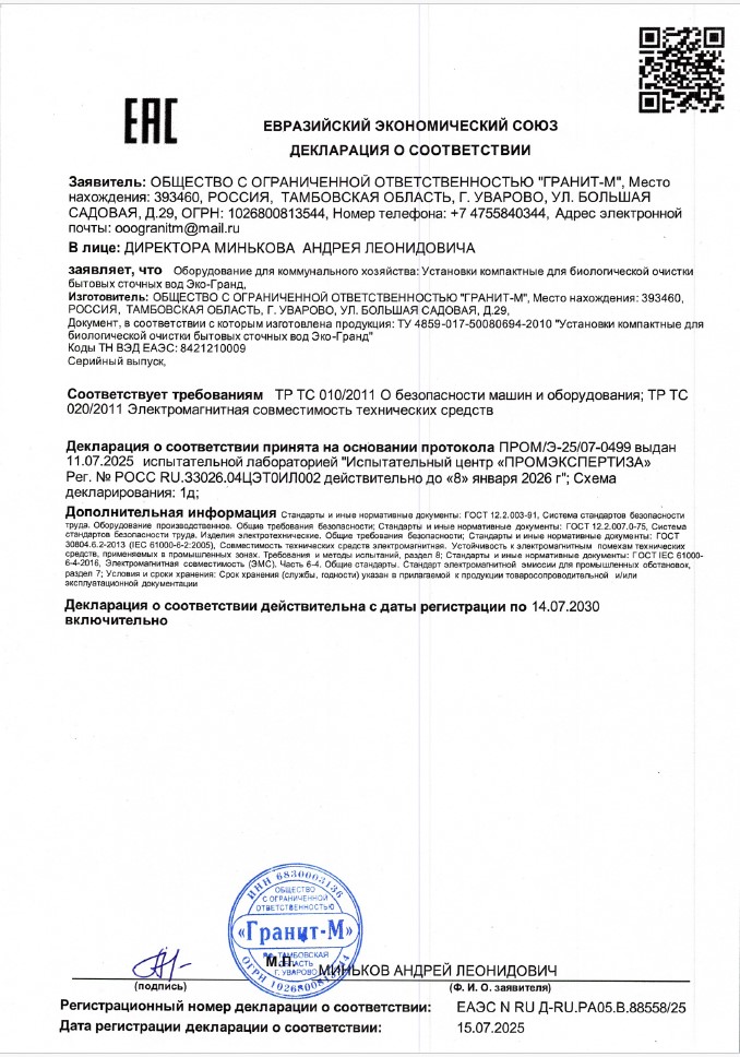 Топас 6 изготовлен из полипропилена, срок службы которого не менее 50 лет. Срок службы аэрационного элемента – 10 лет!